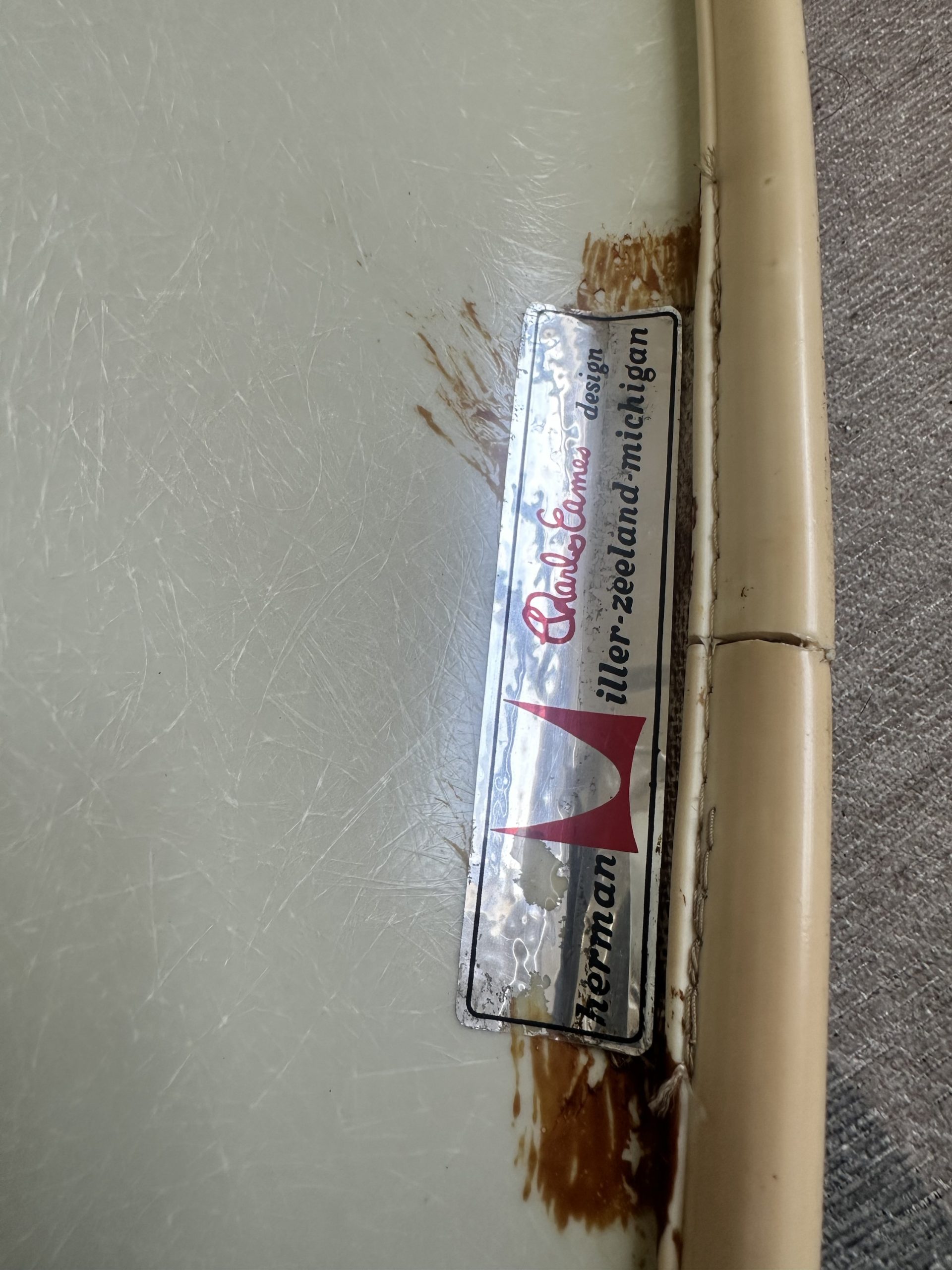 100% Original: Includes the original silver Herman Miller / Charles Eames label (Zeeland, Michigan).