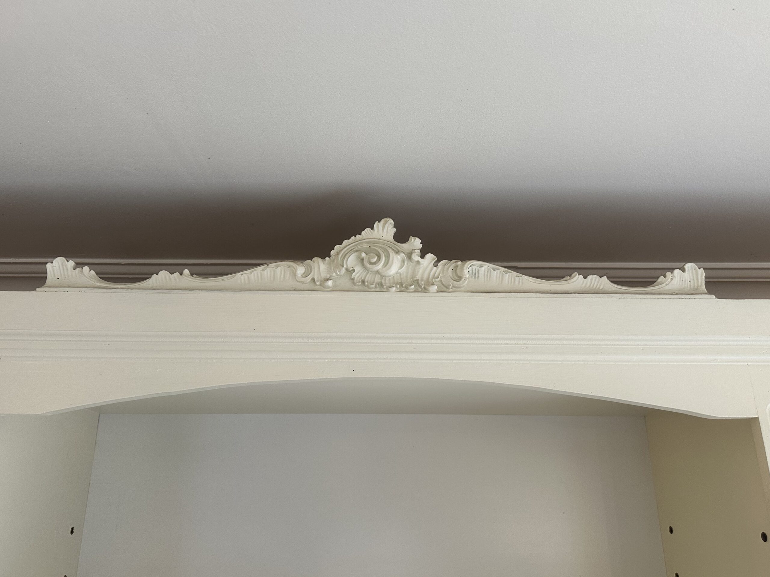 Decorative crown molding and a carved crest add a stately touch, making it suitable for both traditional and modern interiors.