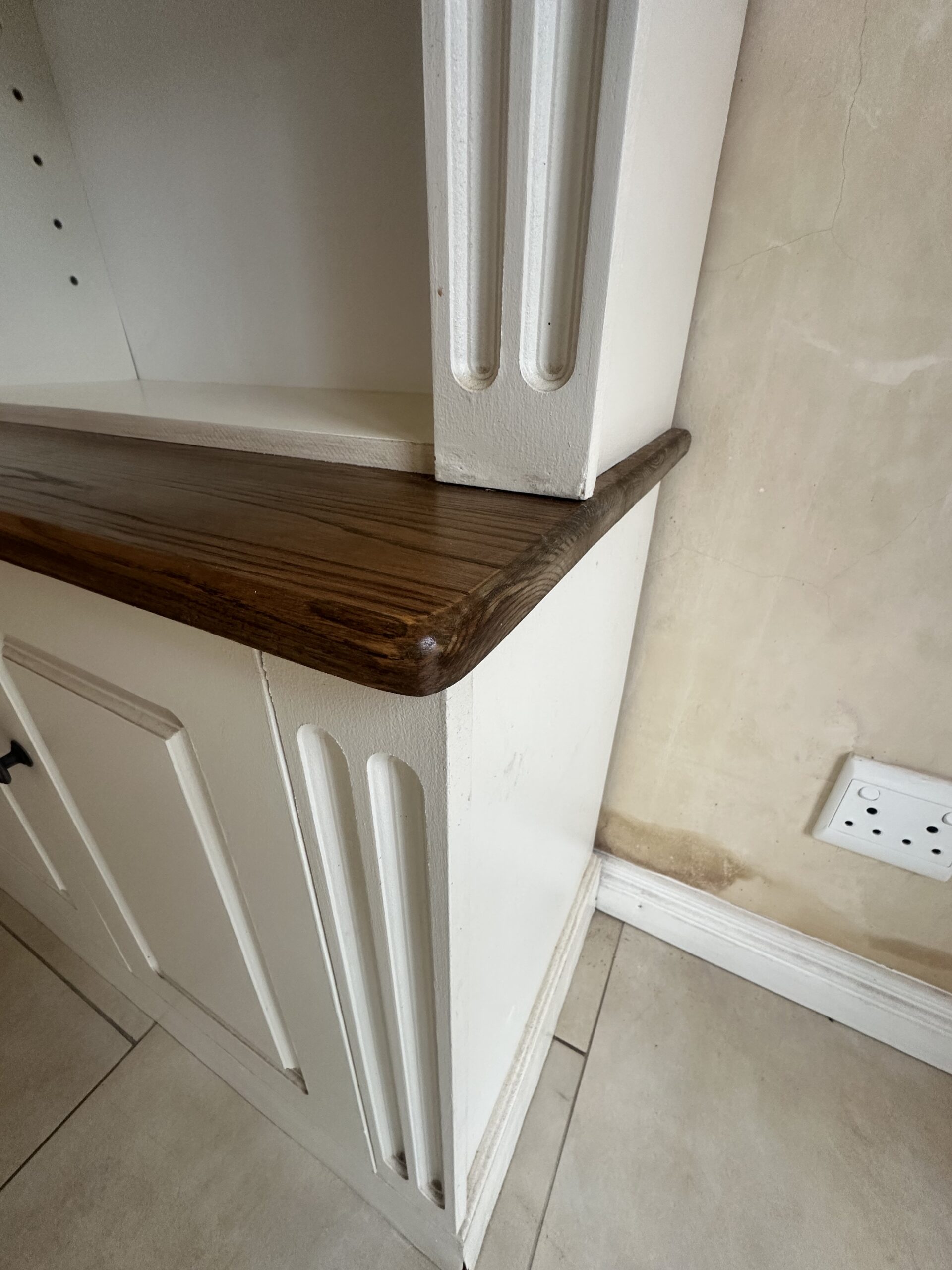 Classic Oak and Cream Built-in Wall Bookshelf & Cabinet Unit
