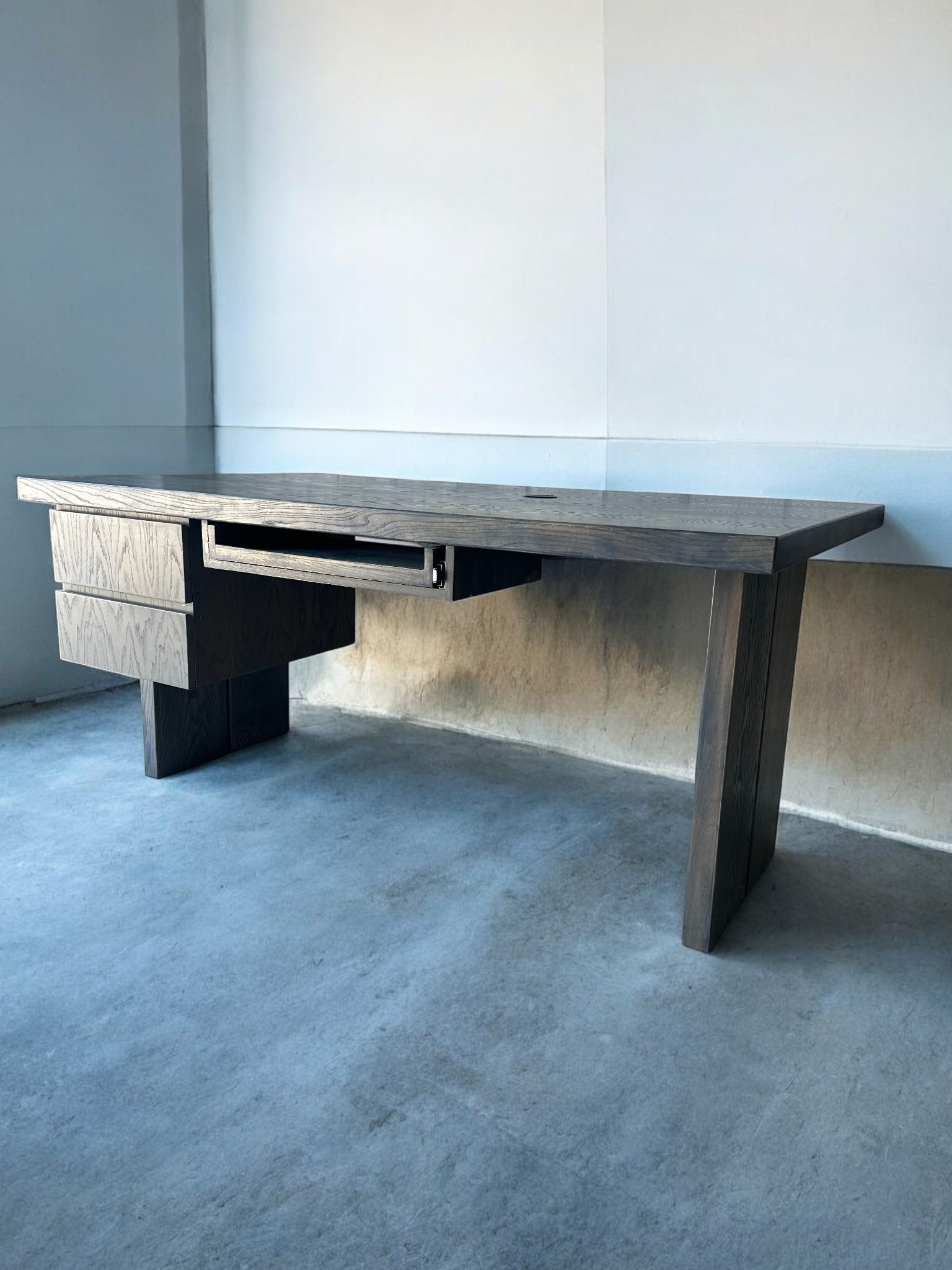 Its thick 5cm top, practical drawer unit, and minimalist silhouette make it an ideal centrepiece for an executive office, studio, or contemporary workspace.